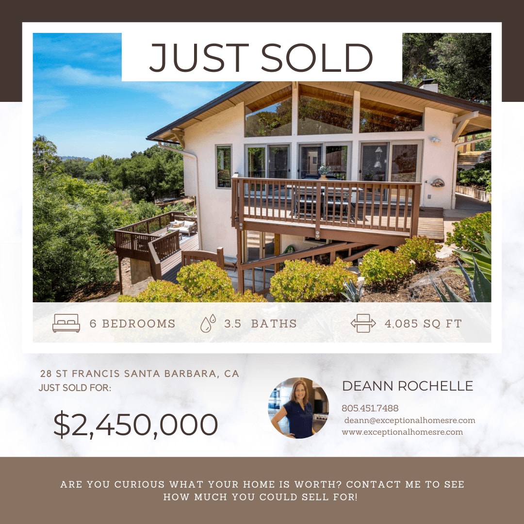 Peace and tranquility surround this tree-top San Roque oasis, with 5 bedrooms, 3.5 bathrooms, and a lush .3 acre lot. With 4,085 square feet of living space, this home has it all! Spacious living room, sitting room with window seat, and formal dining room enjoy huge floor-to-ceiling windows, allowing for natural light and views of the surrounding foliage. The main level of the house also enjoys a bedroom with a connected bathroom. This additional guest bedroom can also be used as a library/office, a bonus game, and a media room with stadium seating. The large primary bedroom features a bathroom with a walk-in closet and a connected office with doors leading out to a semi-private deck seating area. The 2 other lower-level bedrooms enjoy a connected office area, an additional bathroom, and doors leading out to the main deck area. Beautifully re-done, the backyard deck space enjoys picturesque views of the manicured succulents, agave, fruit trees, flowers, and rockwork - perfect for entertaining, relaxing, or exploring the property. This prime San Roque location is close to all that Upper and Lower State Street offers in the coveted Peabody School District - this luxury tree house home is a must-see!